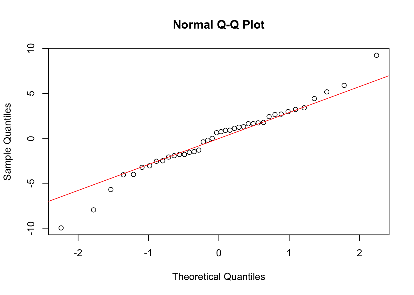 qqline(residuals(model), col = "red")